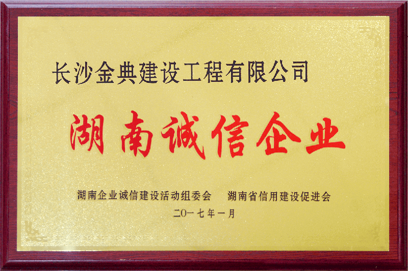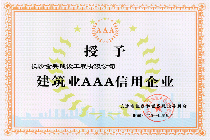 公司十分注重品牌和形象。堅守質量塑品牌、信譽樹形象,管理出效益的原則。堅持“質量是企業的生命”的理念,引領著數十支作風強硬、技術過硬、經驗豐富、敢打硬仗的各種專業施工隊伍, 在激烈的市場競爭中,奠定了“專業體現價值,細節成就品質”的企業形象。先后榮獲湖南省“湖南誠信企業”、“質量優勝企業”、“安全生產先進企業”、 “縣施工質量安全標準化示范工地”等稱號;2013至2017年連續五年被長沙市建筑業協會評為“建筑業施工總承包先進企業”,?2014年至2016年連續三年被評為“長沙市建筑業AAA信用企業”。??