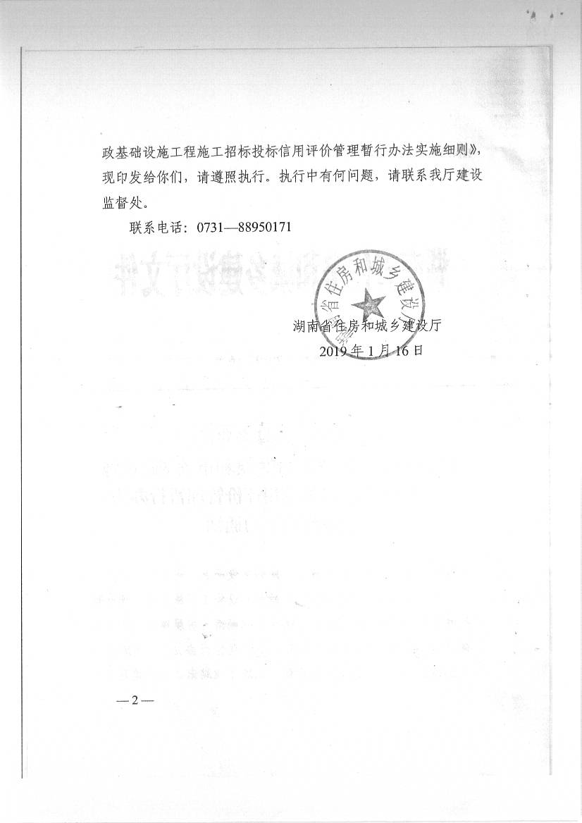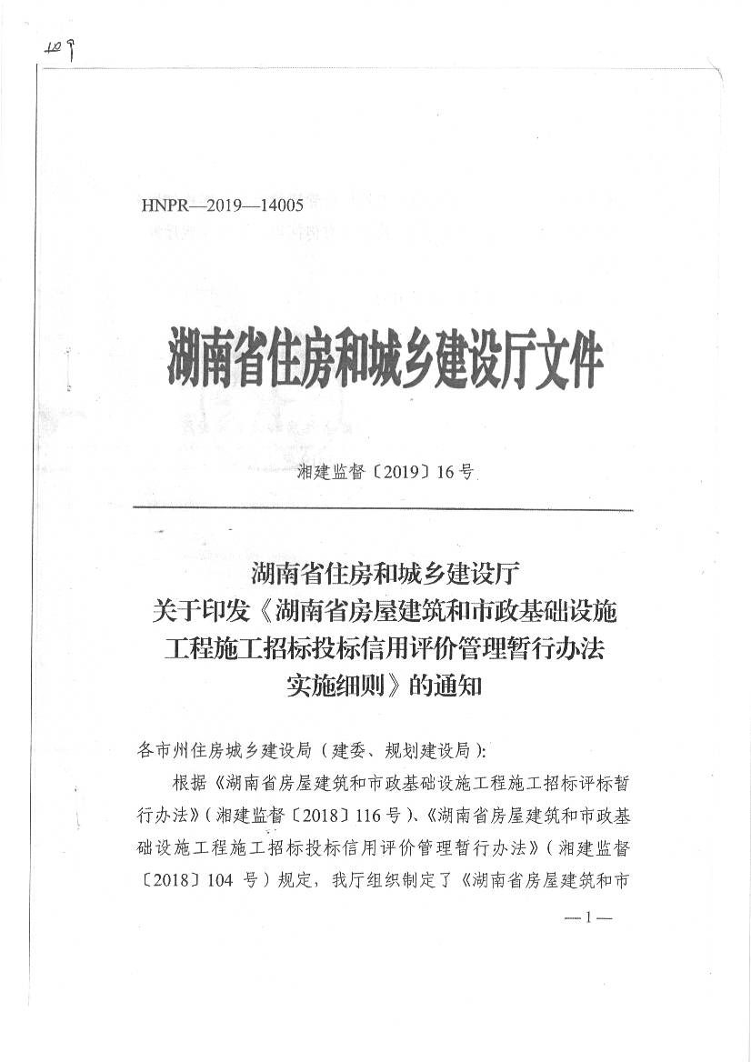 湖南省房屋建筑和市政基礎(chǔ)設(shè)施工程施工招投標投標信用評價管理暫行辦法實施細則